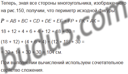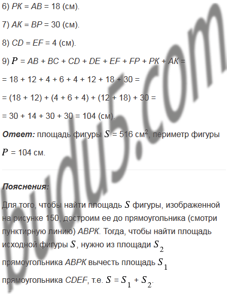 Вычислите периметр и площадь фигуры, изображенной на рисунке 150 (размеры даны в сантиметрах).