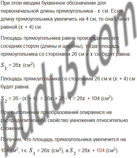 Ширина прямоугольника равна 26 см. На сколько квадратных сантиметров увеличится площадь этого прямоугольника, если его длину увеличить на 4 см?