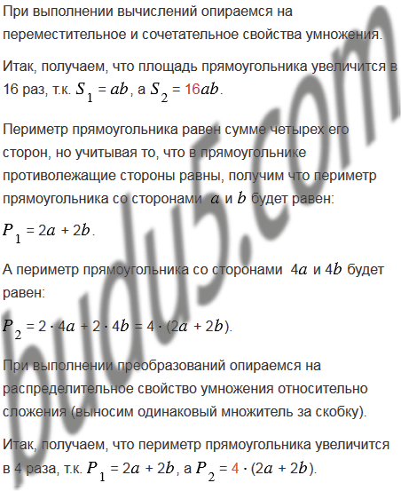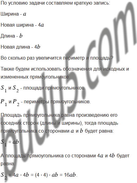 Во сколько раз увеличится периметр и площадь прямоугольника, если каждую его сторону увеличить в 4 раза?