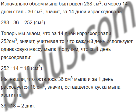 Размеры куска мыла, имеющего форму прямоугольного параллелепипеда, равны 12 см, 6 см и 4 см. Каждый день используют одинаковую массу мыла. Через 14 дней все размеры куска мыла уменьшились в 2 раза. На сколько дней хватит оставшегося куска мыла?