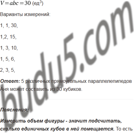 У Ани есть 30 одинаковых кубиков. Сколько различных прямоугольных параллелепипедов она может из них составить, если для построения одного параллелепипеда надо использовать все имеющиеся 30 кубиков?