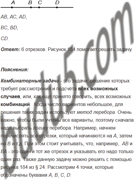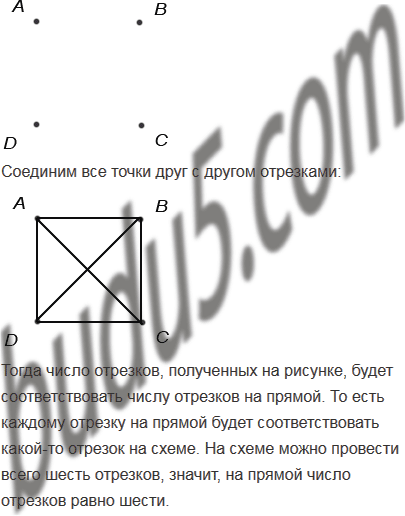 На прямой отметили четыре точки А, В, С и D. Сколько отрезков с концами в отмеченных точках можно провести? Какой из рисунков § 24 помогает решить эту задачу?