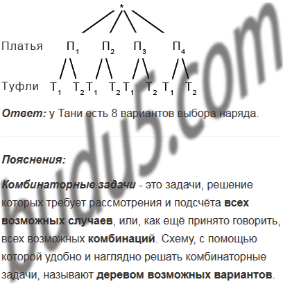 У Тани есть четыре платья и две пары туфель. Сколько у Тани есть вариантов выбора наряда?