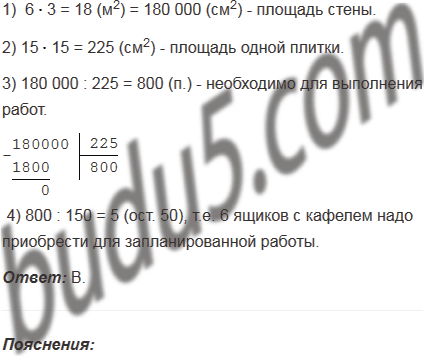 Стену длиной 6 м и высотой 3 м хотят выложить кафелем. Одна кафельная плитка имеет форму квадрата со стороной 15 см, а в одном ящике - 150 плиток. Какое наименьшее количество ящиков с кафелем надо приобрести для запланированной работы?