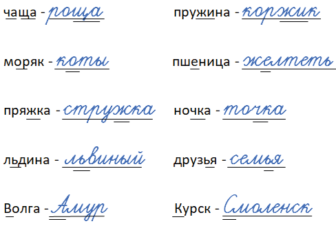 Найдём и подчеркнём в словах изученные орфограммы. Запишем рядом с каждым словом слово с орфограммой на это же правило.