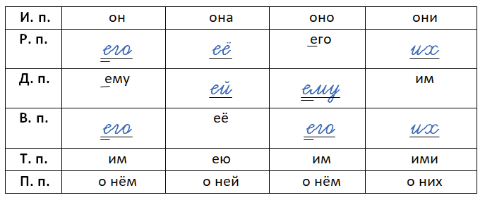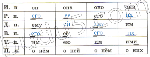 Подчеркни в местоимениях безударные гласные (его и т.д.) и сомнительные окончания (ими).