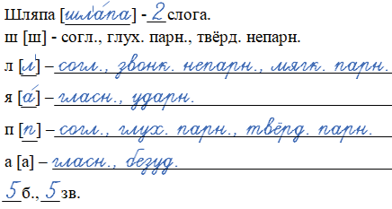 Прочитайте. Продолжите звуко-буквенный разбор слова шляпа.
