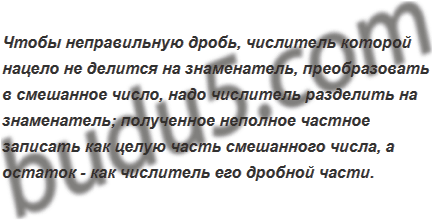 Как неправильную дробь, числитель который нацело не делится на знаменатель, преобразовать в смешанное число?