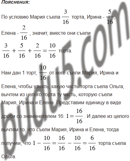 Мария, Ирина, Елена и Ольга съели торт. Мария съела торта, Ирина - , Елена - . Какую часть торта съела Ольга?