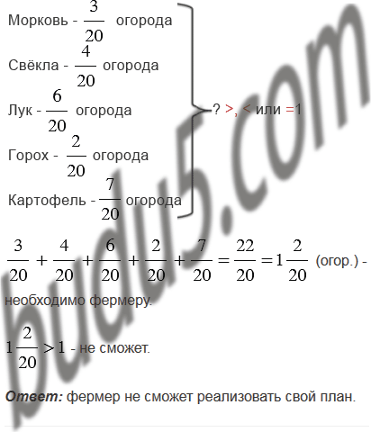 Фермер решил выделить под морковь огорода, под свёклу - , под лук - , под горох - , под картофель - . Сможет ли он реализовать свой план?