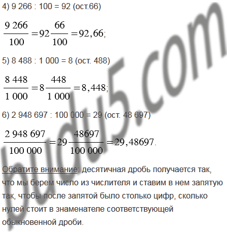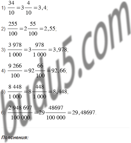Выделите целую и дробную части числа и запишите данное число в виде десятичной дроби: