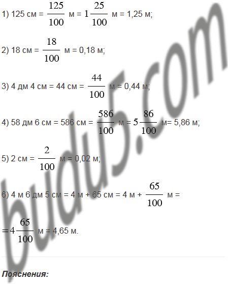 1) 125 см; 3) 4 дм 4 см; 5) 2 см;