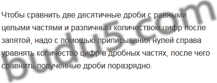 Сформулируйте правило сравнения двух десятичных дробей с равными целыми частями и различным количеством цифр после запятой.