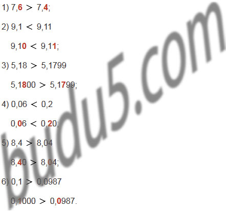 2) 9,1 и 9,11; 4) 0,06 и 0,2; 6) 0,1 и 0,0987.