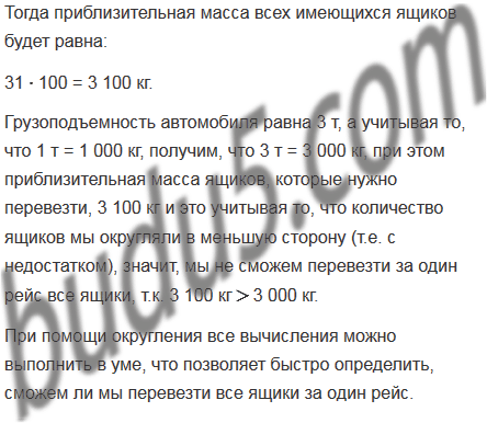 Требуется привезти 102 ящика массой 30,7 кг каждый. Водитель автомобиля, грузоподъемность которого составляет 3 т, быстро определил, что выполнить это задание, сделав один рейс, невозможно. Как, по вашему мнению, он смог это быстро определить?