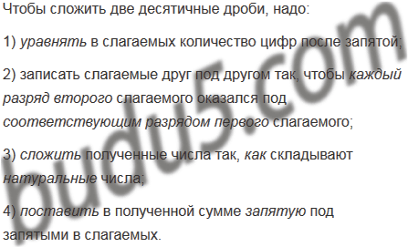 Сформулируйте правило сложения десятичных дробей.