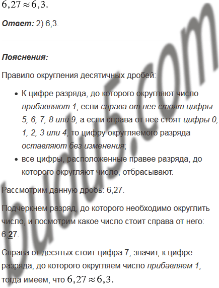 Какое из следующих чисел получим, если округлим десятичную дробь 6,27 до десятых: