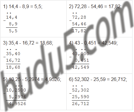 1) 14,4 - 8,9; 3) 35,4 - 16,72; 5) 10,25 - 5,2974;