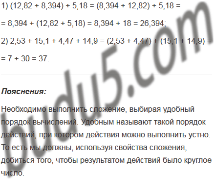 1) (12,82 + 8,394) + 5,18; 2) 2,53 + 15,1 + 4,47 + 14,9.