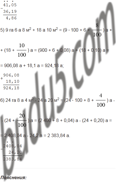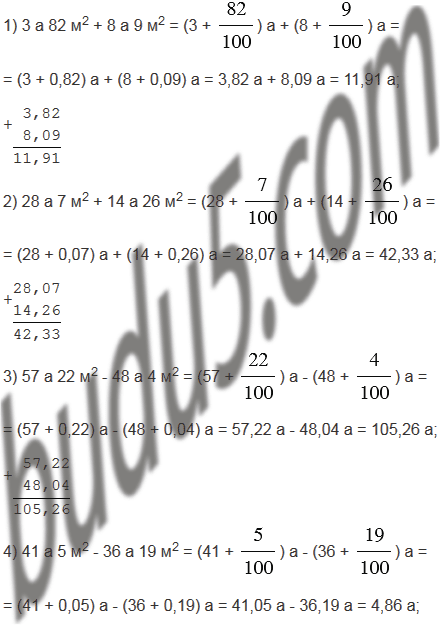1) 3 а 82 м2 + 8 а 9 м2; 4) 41 а 5 м2 - 36 а 19 м2;
