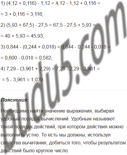 1) (4,12 + 0,116) - 1,12; 3) 0,844 - (0,244 + 0,018);