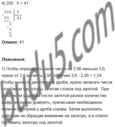 2) на 3,5 больше 7,05; 4) в 5 раз меньше 205?
