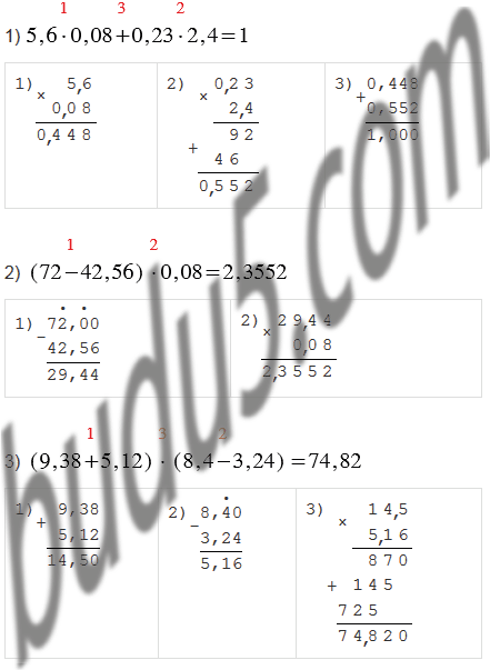 3) (9,38 + 5,12) (8,4 - 3,24).