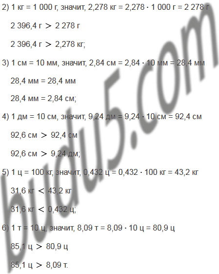 2) 2 396,4 г и 2,278 кг; 5) 31,6 кг и 0,432 ц;
