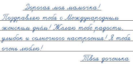 • Составьте и запишите поздравление для мамы, бабушки или сестры, подруги.