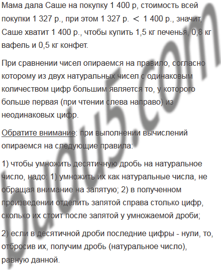 Мама поручила Саше купить 1,5 кг печенья, 0,8 кг вафель и 0,5 кг конфет. Хватит ли Саше 1400 р., если 1 кг печенья стоит 450 р.,