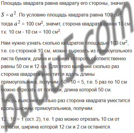 Длина прямоугольного листа бумаги равна 50 см, а ширина - 12 см. Сколько квадратов площадью 100 см2 можно вырезать из этого листа бумаги?