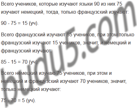 В пятых классах учатся 100 учеников. Из них 75 учеников изучают немецкий язык, 85 учеников - французский, а 10 учеников не изучают ни один из этих языков. Сколько учеников изучают только французский язык, а сколько - только немецкий?
