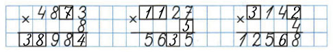 4 • 8 = 32. 32 + 6 = 38. Пишу 8 под единицами тысяч, а 3 под десятками тысяч, так как других десятков тысяч для умножения нет.