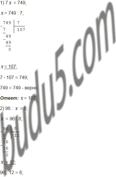 1) 7 = 749; 2) 96 : = 8; 3) 12 = 12.