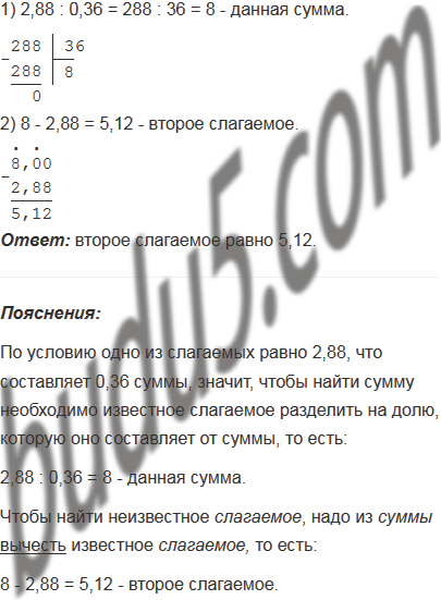 Одно из слагаемых равно 2,88, что составляет 0,36 суммы. Найдите второе слагаемое.