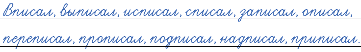 списал, переписал, подписал, записал, прописал, надписал, вписал, выписал, описал, приписал, исписал.
