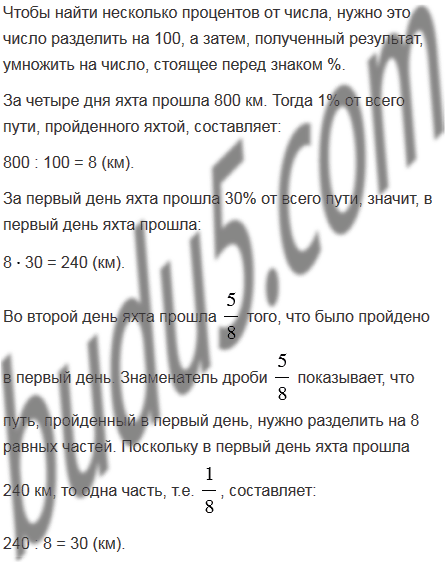 За четыре дня яхта прошла 800 км. В первый день было пройдено 30% всего расстояния, во второй день -