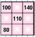 140 + 110 + 80 = 330 - сумма в каждой строке, в каждом столбце и из угла в угол.