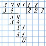 Умножу 36 на 7, получу 252. Это больше, чем 223, значит, в частном должно быть меньше, чем 7. Пробую, подходит ли цифра 6.