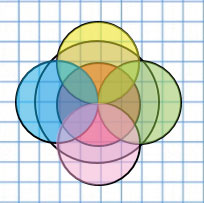 2) Начерти 4 такие же окружности так, чтобы они пересеклись в том же центре.