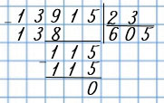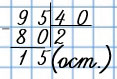 13 : 15. 13 меньше, чем 15, пишу в частном 0. Добавляю 5 ед.