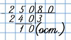Нахожу третью цифру частного: 4 : 24. 4 меньше, чем 24, пишу в частном 0.