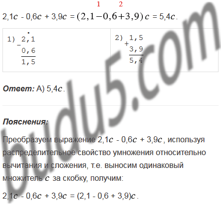 Упростите выражение 2,1 - 0,6 + 3,9.