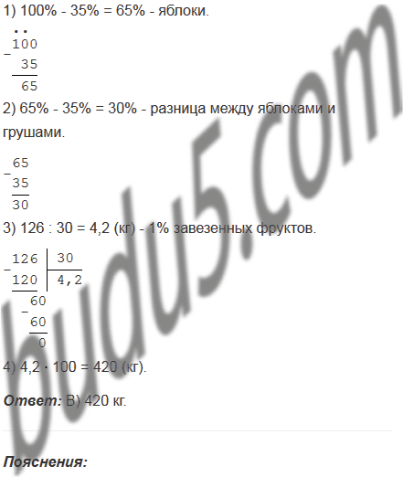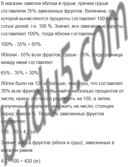 В магазин завезли яблоки и груши, причем груши составляли 35% завезенных фруктов. Яблок было на 126 кг больше, чем груш. Сколько килограммов яблок и груш завезли в магазин?