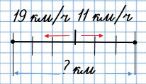 1) 11 + 19 = 30 (км/ч) - скорость удаления.