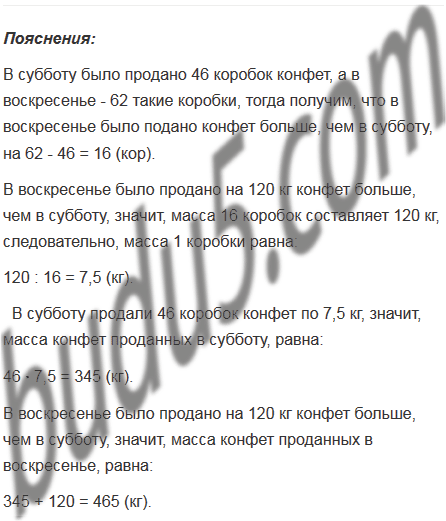 Акционерное общество "Приятного аппетита" продало в субботу 46 коробок конфет, а в воскресенье - 62 такие коробки. В воскресенье было продано на 120 кг конфет больше, чем в субботу. Сколько килограммов конфет было продано в субботу и сколько - в воскресенье?