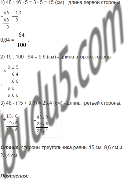 периметра, а длина второй - 0,64 длины первой стороны. Найдите стороны треугольника.