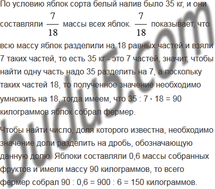 Фермер собрал в своём саду урожай фруктов. Яблоки составляли 0,6 массы собранных фруктов. Яблок сорта белый налив было 35 кг, и они составляли