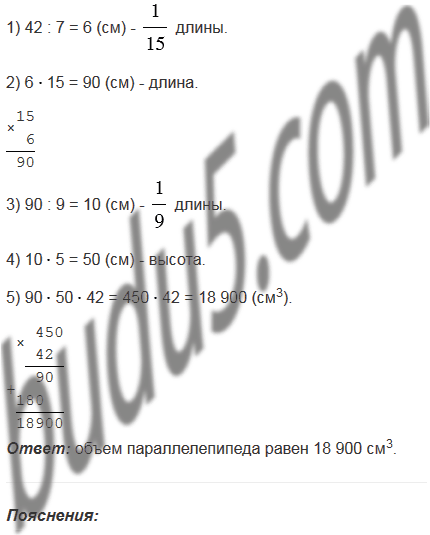 Ширина прямоугольного параллелепипеда равна 42 см, что составляет его длины, а высота составляет длины. Найдите объем параллелепипеда.