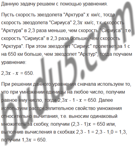 Звездолет "Сириус" пролетает за 1 с на 650 км больше, чем звездолет "Арктур". Найдите скорость каждого звездолета (в километрах за секунду), если скорость "Арктура" в 2,3 раза меньше, чем скорость "Сириуса".